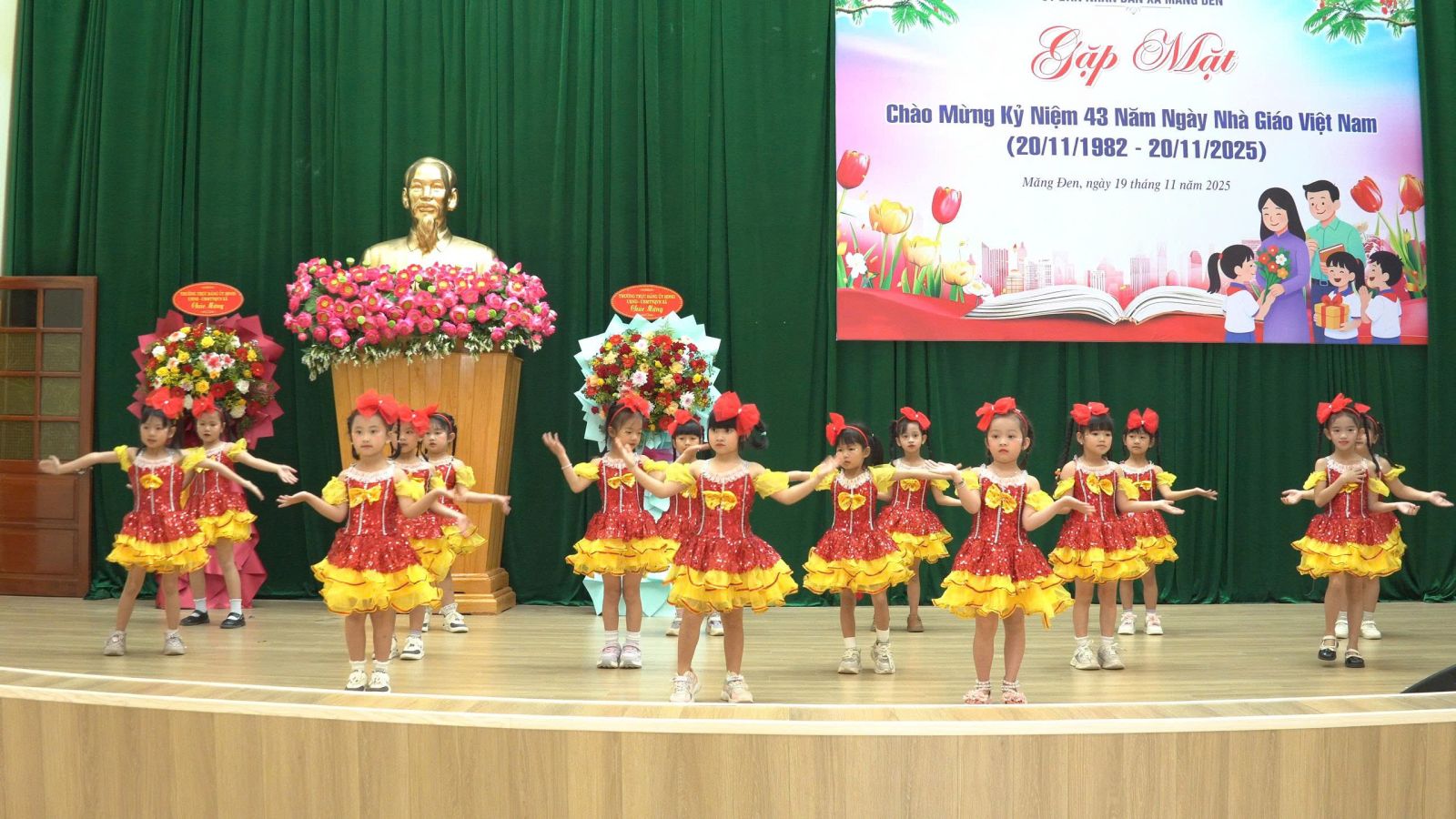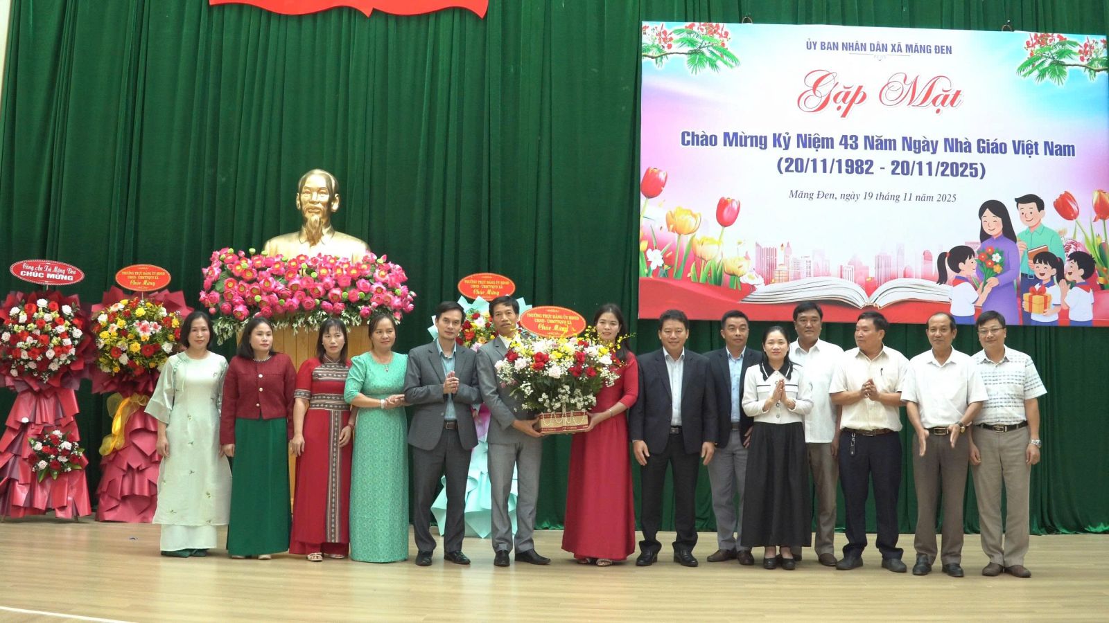 Nhân dịp này, lãnh đạo xã Măng Đen đã trao tặng lẵng hoa tươi thắm chúc mừng các thầy, cô giáo nhân ngày truyền thống và chúc các thầy, cô giáo có nhiều sức khỏe, duy trì tình yêu nghề, tiếp tục đoàn kết thi đua, sáng tạo, đạt được nhiều thành công hơn nữa trong quá trình công tác, góp phần nâng cao chất lượng giáo dục và đào tạo của xã trong thời gian tới.