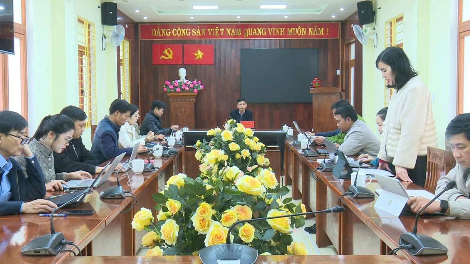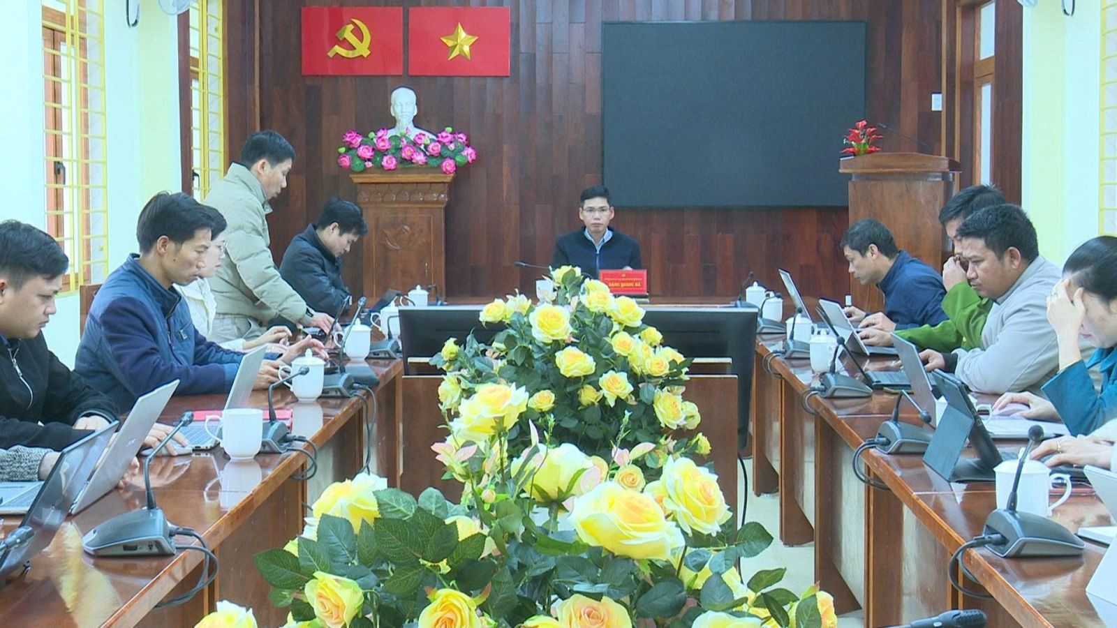 Đồng chí Đặng Quang Hà, Bí thư Đảng ủy, Chủ tịch HĐND xã, Trưởng Ban Chỉ đạo chủ trì cuộc họp. Tham dự có lãnh đạo các phòng, ban chuyên môn của xã là thành viên Ban Chỉ đạo.