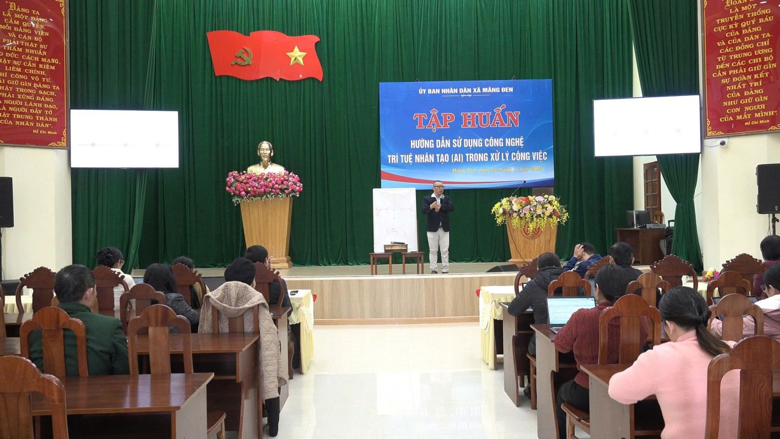 Ngày 25/11, UBND xã Măng Đen tổ chức Hội nghị tập huấn hướng dẫn sử dụng công nghệ trí tuệ nhân tạo (AI) trong xử lý công việc cho đội ngũ cán bộ lãnh đạo quản lý; cán bộ, công chức, viên chức các phòng, ban chuyên môn thuộc xã.