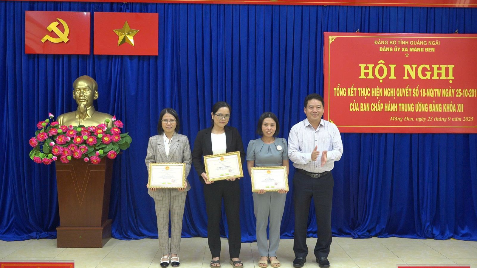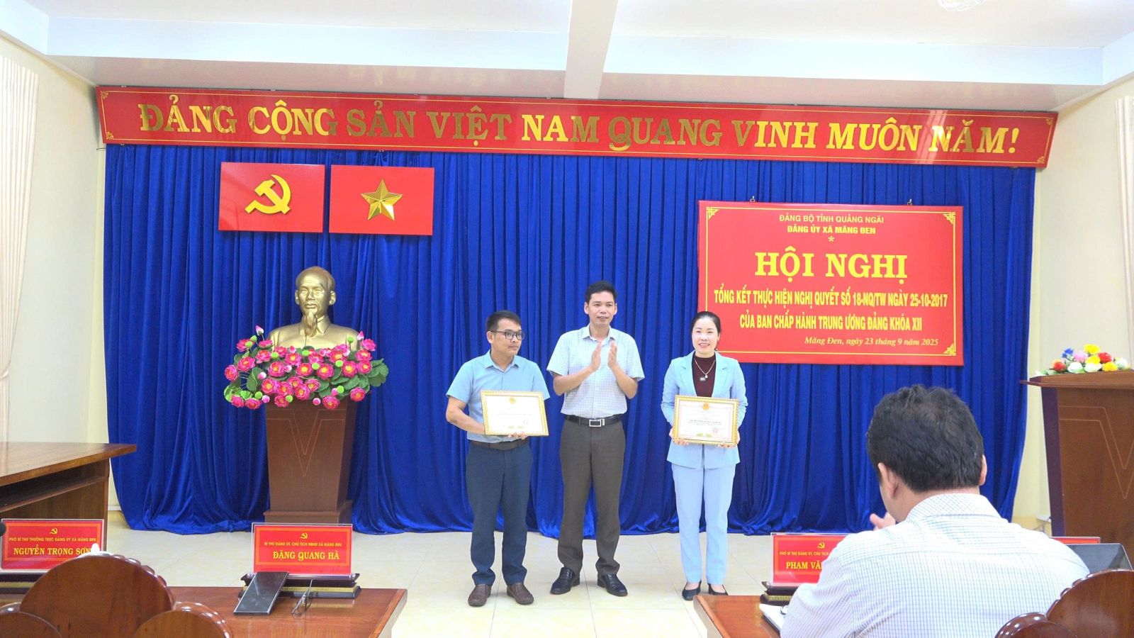 Tại hội nghị, các đồng chí lãnh đạo xã Măng Đen đã khen thưởng 02 tập thể và 03 cá nhân có thành tích xuất sắc trong thực hiện nhiệm vụ.