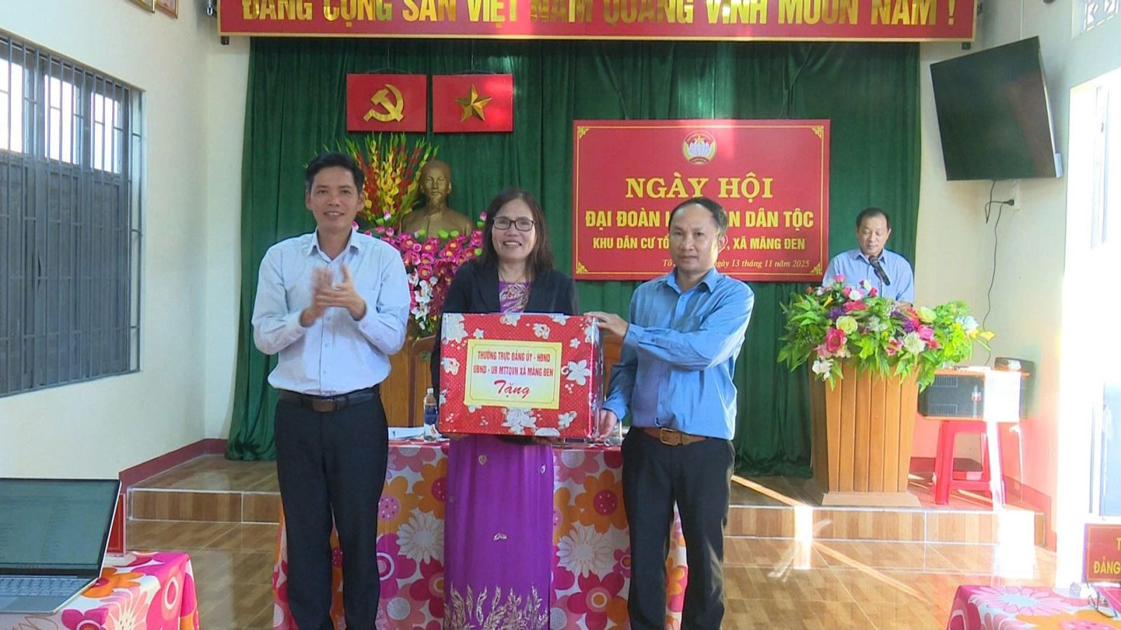 Dự và chung vui với cán bộ, Nhân dân có đồng chí Đặng Quang Hà Bí thư Đảng ủy, Chủ tịch HĐND xã Măng Đen; đại diện Thường trực HĐND, Ủy ban MTTQ Việt Nam xã; Ban Công tác Mặt trận các tổ dân phố cùng đông đảo cán bộ, đảng viên và Nhân dân trên địa bàn.