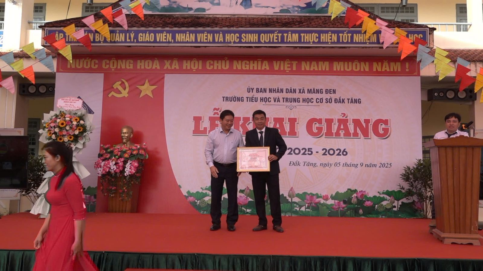 Dự lễ Khai giảng cùng với thầy và trò trường Trung học cơ sở Măng Đen có đồng chí Đặng Quang Hà, Bí thư Đảng ủy, Chủ tịch HĐND xã; đồng chí Phạm Văn Thắng, Phó Bí thư Đảng ủy, Chủ tịch UBND xã dự khai giảng tại trường Tiểu học-THCS Đăk Tăng; đồng chí Ngô Thị Na, Uỷ viên Ban Thường vụ Đảng ủy, Phó Chủ tịch HĐND xã dự lễ khai giảng tại trường Mầm non Măng Đen; đồng chí Nguyễn Nhật Trường, Uỷ viên Ban Thường vụ Đảng ủy, Phó Chủ tịch UBND xã dự lễ khai giảng tại trường Tiểu học Măng Đen và các đồng chí Uỷ viên Ban chấp hành Đảng bộ xã dự lễ khai giảng tại các điểm trường trên địa bàn.
