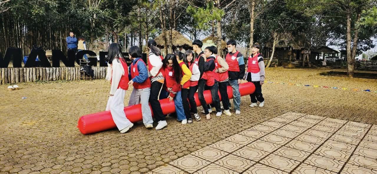 Ngoài ra, các hoạt động teambuilding và trò chơi vận động nhẹ như “Kết nối đồng đội”, “Vượt chướng ngại vật”, “Hành trình khám phá Chợ phiên Măng Đen” giúp tăng cường tinh thần đoàn kết, khả năng làm việc nhóm, sự chủ động và sáng tạo của các em trong không gian mở, gần gũi với thiên nhiên.