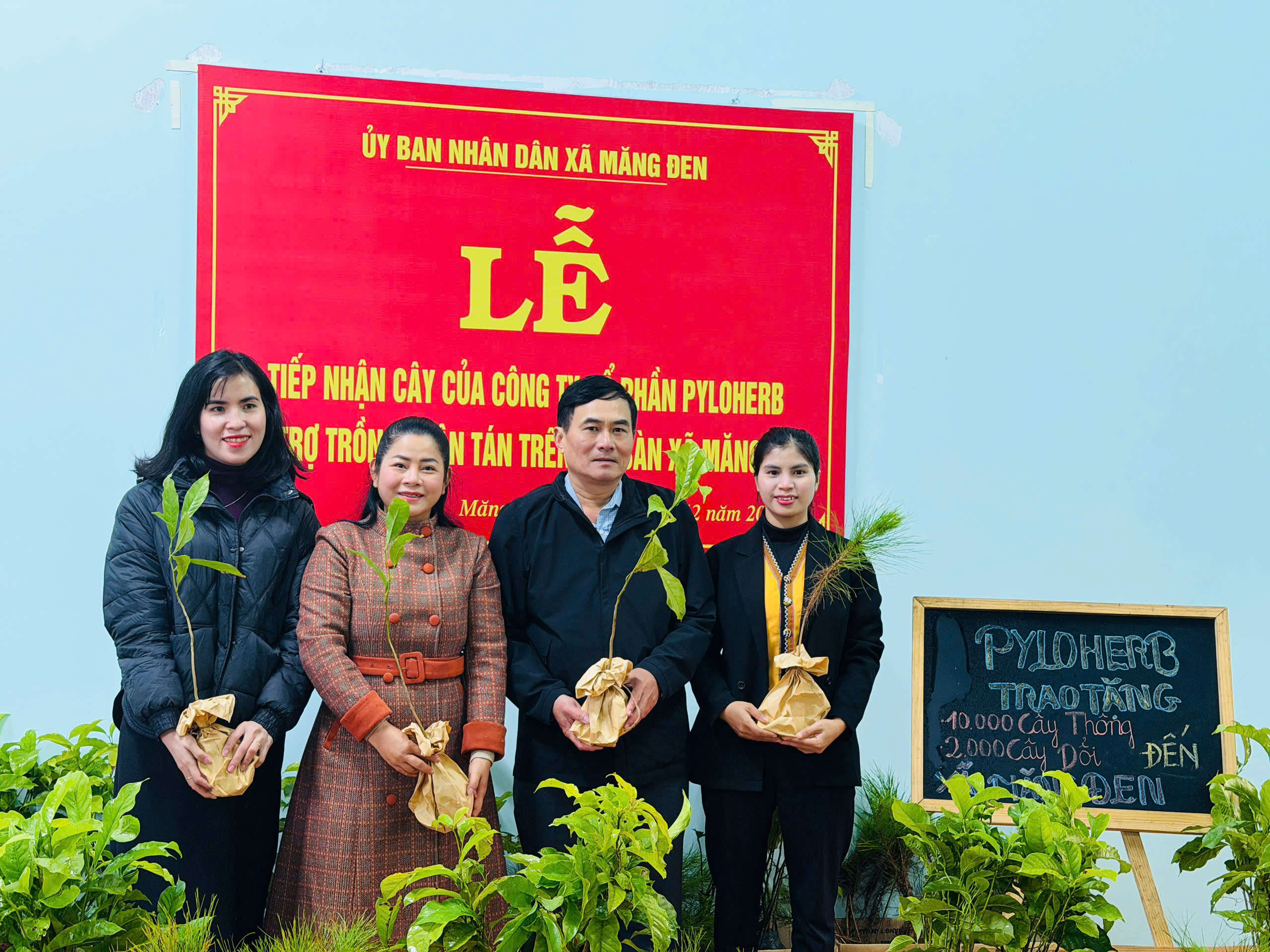 Tại buổi lễ, đại diện Công ty Cổ phần PYLOHERB đã trao tặng 10.000 cây thông và 2.000 cây giổi nhằm hỗ trợ người dân triển khai trồng rừng, góp phần phủ xanh Măng Đen. Đây là hoạt động có ý nghĩa thiết thực trong công tác bảo vệ môi trường, phát triển rừng bền vững và ứng phó với biến đổi khí hậu.